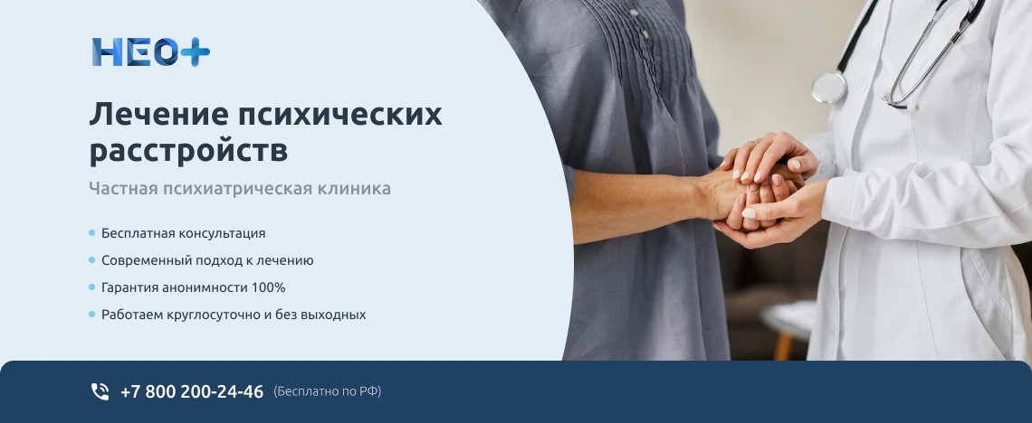 Записаться на прием к врачу-психиатру можно на официальном сайте клиники «НеоПлюс» в Клину или по телефону ☎️ +7 (800) 200-24-46. Звоните нам, не запускайте проблему. Мы знаем, как вернуть здоровье и покой в Вашу семью!